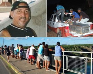 O corpo de Jadilson Farias Maia, 52 anos, foi resgatado com um bote do Corpo de Bombeiros até o povoado Rio do Sal, de onde foi removido e entregue aos peritos e auxiliares do Instituto Médico Legal - IML. Com o aparecimento do corpo de Jadilson, elimina-se uma série de boatos espalhados nos últimos dias e dá numeros finais a hipótese mais provável da tragédia. Na madrugada do sábado (15), o aposentado, teria assassinado com golpes de marreta, a mulher, os dois filhos e em seguida pegou o seu veiculo, um fusca, se deslocou até a ponte metálica e se jogou de uma altura de 90 metros. Para a polícia, e segundo depoimentos de amigos e populares, Jadilson passava por problemas de depressão, e ultimamente, estaria recebendo muita pressão, principalmente devido ao acúmulo de dívidas. O fato novo é uma perfuração no crânio Jadilson que mesmo que tenha sido proporcionado por uma bala (o que parece pouco provável) não muda a suspeita da autoria da tragédia. Pelo sim, pelo não, a polícia técnica realiza a necropsia do corpo, e, somente através do resultado do laudo é que haverá a confirmação da causa da morte.
