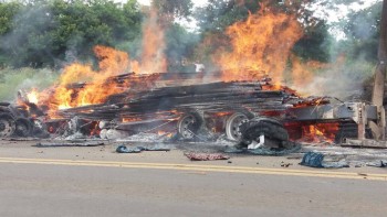 Caminhão pega fogo e motorista morre carbonizado