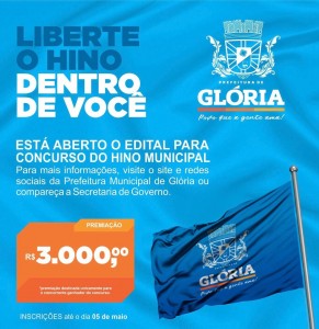 A Prefeitura Municipal de Glória, no norte da Bahia, lançou edital de concurso público n° 001/2019 para eleger a composição musical que será instituída como hino oficial do município. A canção deverá representar a comunidade, tornando-se um símbolo para os moradores.