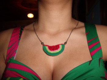 Melancia no pescoço e prato vazio