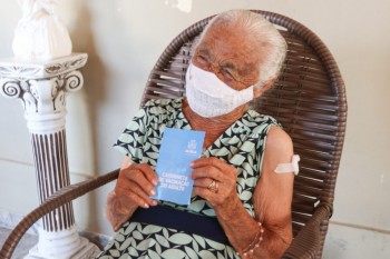 Em momentos emocionantes e memoráveis, foram vacinadas a Dona Emília Maria, com 110 anos, Dona Leocádia Teixeira, com 102 anos e Dona Josefa Castor (Dadá), com 98 anos, representantes da sede e da zona rural.