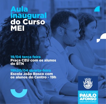 Nos dias 19 e 20 de abril, alunos inscritos no Curso de Micro Empreendedor Individual (MEI), participam das aulas inaugurais que acontecem no BTN e no Centro, respectivamente, às 19h. O objetivo é repassar o material didático e como as aulas serão ministradas.