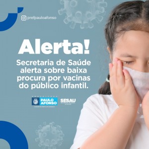 A Secretaria de Saúde de Paulo Afonso chama a atenção dos pais ou responsáveis de crianças com idade até 4 anos para a importância da atualização da caderneta vacinal para este público. De acordo com a equipe de imunização, as vacinas contra a pólio e outras que fazem parte da rotina, está com baixa procura nos postos de saúde.