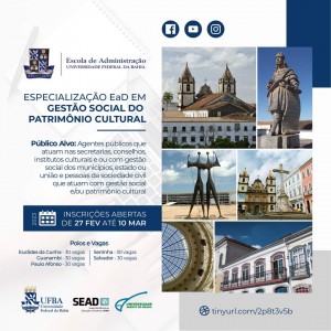 Especialização em gestão social e políticas públicas do patromônio cultural EAD da Ufba