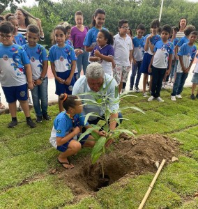 Os alunos, acompanhados da secretária de Educação, Elza Brito, fizeram uma festa com o prefeito. O gestor iniciou o plantio com a aluna Islayane Beatriz, da Escola Casa da Criança 2. Após a atividade, os alunos deram um abraço carinhoso no gestor, que entrou na brincadeira da garotada.