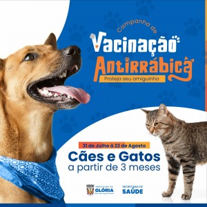 A Secretaria de Saúde de Glória (BA), por meio da Vigilância Epidemiológica do município, inicia nesta segunda-feira,31/07/2023, Campanha de Vacinação Antirrábica em Cães e Gatos na área rural, nas seguintes localidades; Olhos d’água do Souza, Salgadinho dos leites, Retiro e Tinguizeiro. Das 8h às 13h. A Campanha de Vacinação será realizada até o dia 22 de agosto.