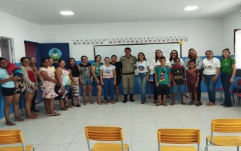 Com o tema “Caindo na Real”, o instrutor Sargento Adailton, realizou a aula inaugural para mais de 200 alunos, abordando: combate às drogas e à violência, cidadania, valorização da vida e bullying, além de outras questões, sobre comportamento, hierarquia e disciplina. Para esse segundo semestre, serão atendidas seis turmas da área Rural.