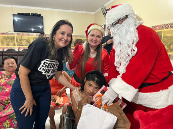 A chegada do Papai e da Mamãe Noel foi um momento especial para os moradores do abrigo. "Foi uma tarde de alegria, amor e carinho. Agradecemos a todos que contribuíram com este momento, fazendo os idosos mais felizes e contribuindo para o bem-estar deles", diz a secretária Cíntia.
