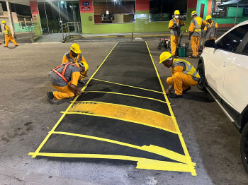 Para garantir mais segurança no trânsito, a Administração do Bairro Tancredo Neves está realizando melhorias na Avenida Padre Lourenço. O administrador do bairro, Miguel Leite, e o Diretor do Departamento Municipal de Trânsito, Francisco Dantas, estiveram acompanhando a pintura do redutor de velocidade e da faixa de pedestre que foi instalado na frente do Supermercado Kenio.