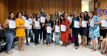 Nesta quarta-feira (19), mais 54 alunos receberam certificados dos cursos de bordado em vagonite: laços e tiaras, fastfood e oficina para redação, capacitações ofertadas pela Secretaria de Desenvolvimento Social.