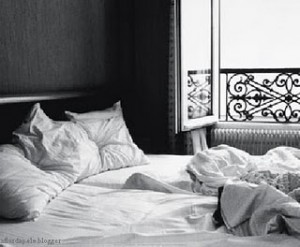 “... Nos lençóis macios, Amantes se dão, Travesseiros soltos, Roupas pelo chão ...”