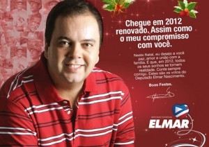 Neste Natal, eu desejo a você paz, amor e união com a família. E que, em 2012, todos os seus sonhos se tornem realidade. Conte sempre comigo. Estes são os votos do Deputado Elmar Nascimento. Boas Festas" .