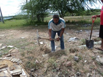 A foto  do parlamentar ajudando da escavação para implantação do duto foi  foi postada nas redes sociais.