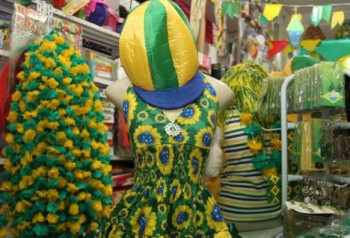 A 2 meses da abertura da Copa do Mundo, os lojistas já começam a preparar o estoque com produtos estilizados tanto para vender no atacado quanto no varejo. Bandeirinhas, adesivos, bonés e outros itens já podem ser encontrados no comércio do centro e do Bairro Tancredo Neves.
