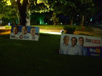 Porém, até o momento é o que se observa é a manutenção de placas dos candidatos ao governo da Bahia e alguns dos seus candidatos proporcionais mantidas em horários proibidos pela lei. Entre as 22h e as 6h, nenhum tipo de propaganda política pode permanecer na cidade. As placas, faixas e cartazes têm de ser retiradas. “Esses equipamentos permitidos precisam ser móveis, sem prejudicar nem causar riscos ao trânsito, e não podem afetar a mobilidade das pessoas nas calçadas.Também não podem ficar em vias públicas”, é o que diz o TRE. “Uma vergonha isso aqui!”, diz um senhor apontando para uma placa em frente ao Fórum Adauto Pereira de Souza.