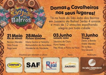 Em comemoração aos festejos de Santo Antônio, São Pedro e São João, o mês de Junho é recebido com muita festa no Nordeste do Brasil e com o objetivo de valorizar e incentivar essa cultura no norte da Bahia, a TV São Francisco em parceria com a Prefeitura Municipal de Juazeiro lança a 3ª edição dos São João dos Bairros.