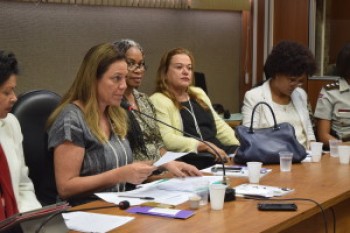 PARTICIPAÇÃO: Representantes de diversas instituições estiveram presentes à audiência, como a secretária estadual de Políticas para Mulheres, Olívia Santana; a promotora e coordenadora do Grupo de Atuação Especial em Defesa da Mulher (Gedem), Márcia Teixeira; a Desembargadora e coordenadora da Coordenadoria da Mulher do Tribunal de Justiça do Estado da Bahia, Nágila Brito; a representante da Defensoria Pública do Estado da Bahia, Eva Rodrigues; a representante da Superintendência de Apoio e Defesa dos Direitos Humanos da Secretaria de Justiça, Anhamona Brito e a Capitã da Polícia Militar e representante do Centro Maria Felipa, Edlania Aguiar, além de vários deputados.